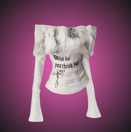WHITE FLUFF SHOULDER TSHIRT