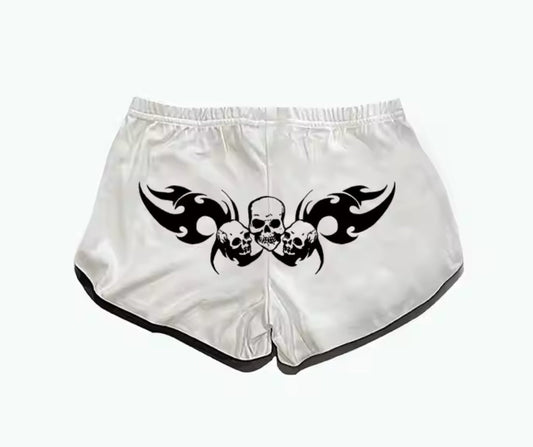 WHITE SKULL AND FLAME SHORT